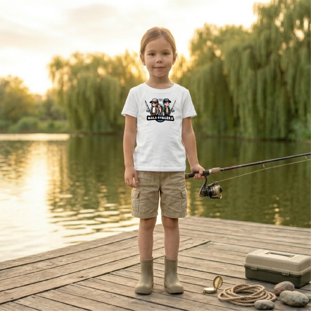Dětské tričko Malá rybářka je stvořené pro všechny malé dobrodružky, které milují rybaření, přírodu a dobrodružství u vody. Holčičky, které nosí toto tričko, ukazují světu, že i rybářství je zábava pro dívky a že chytnout velkou rybu není jen chlapská disciplína! 🐟🎀